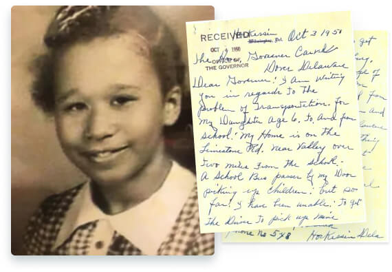 In 1951, Hockessin mother Sarah Bulah asked the state if her daughter, Shirley Barbara, could please be picked up by the school bus that passed their house on the way to the whites-only school just down the road. A non-response to that question turned into a lawsuit—Bulah v. Gebhart—which was ultimately bundled with cases in four other places (VA, KS, DC, SC) and became part of the United States Supreme Court’s historic 1954 decision in Brown v. Board of Education.